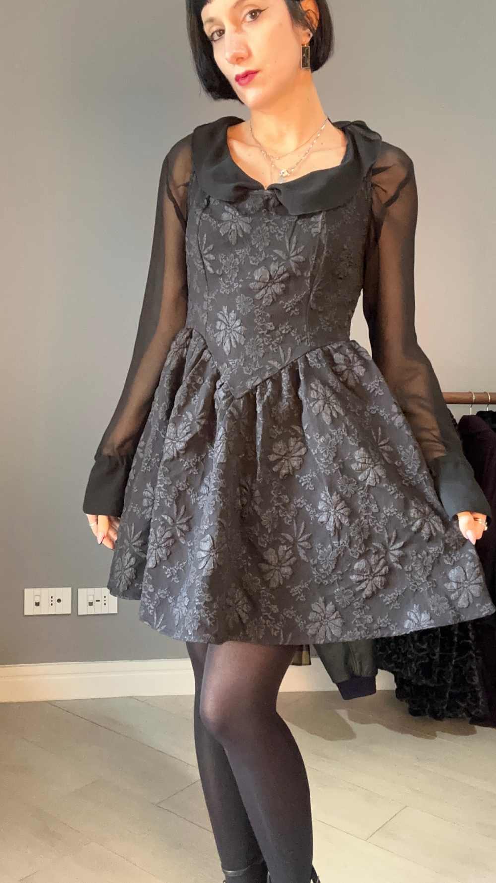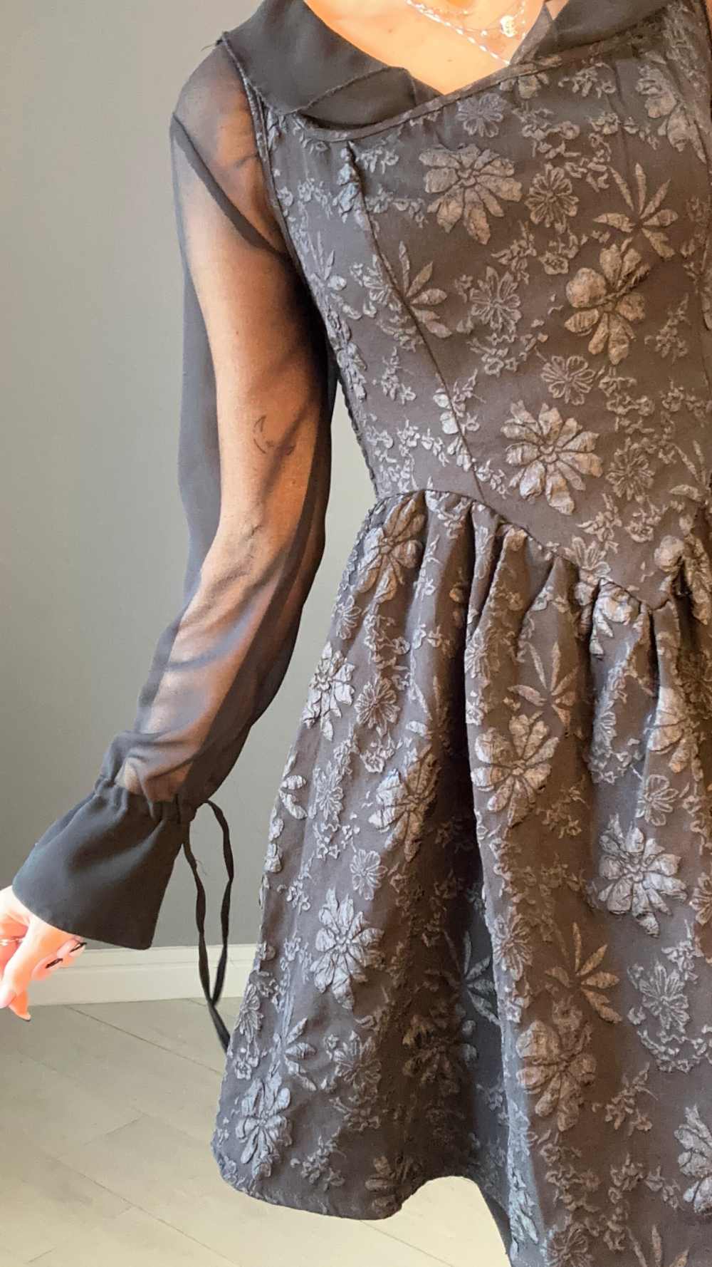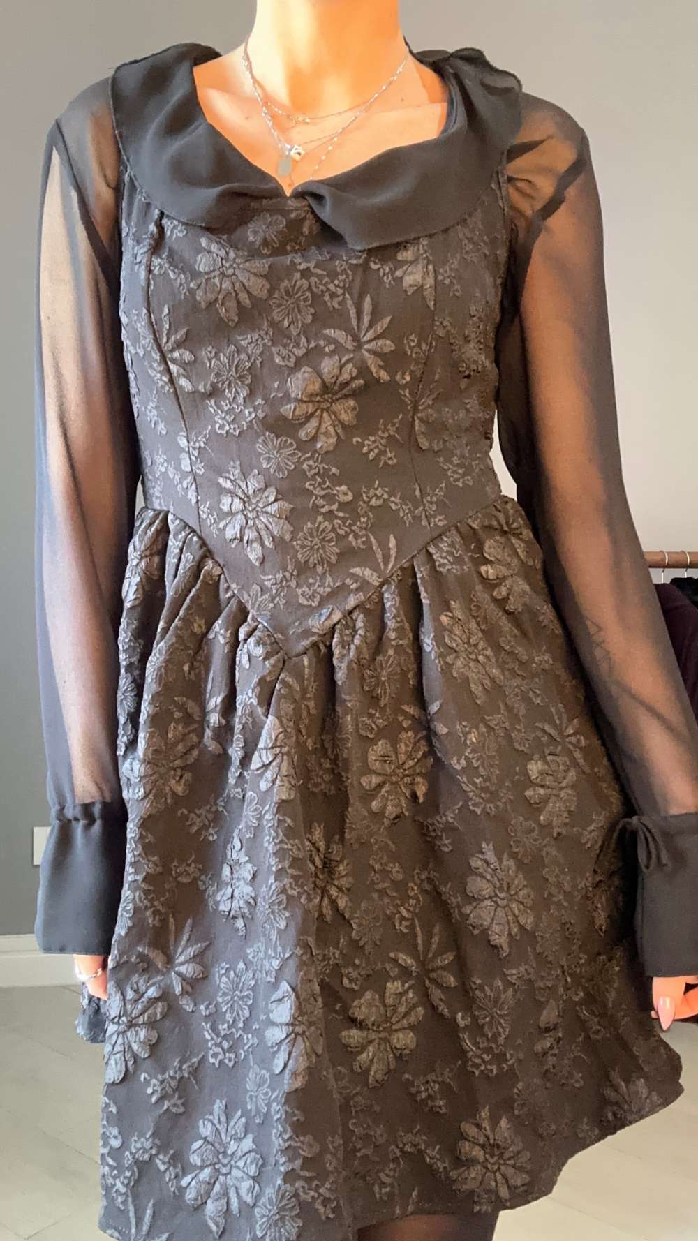 Come fossi uscita da un romanzo gotico, questo abito ha un'essenza fortissima dark. Indossalo nelle tue serate più misteriose.