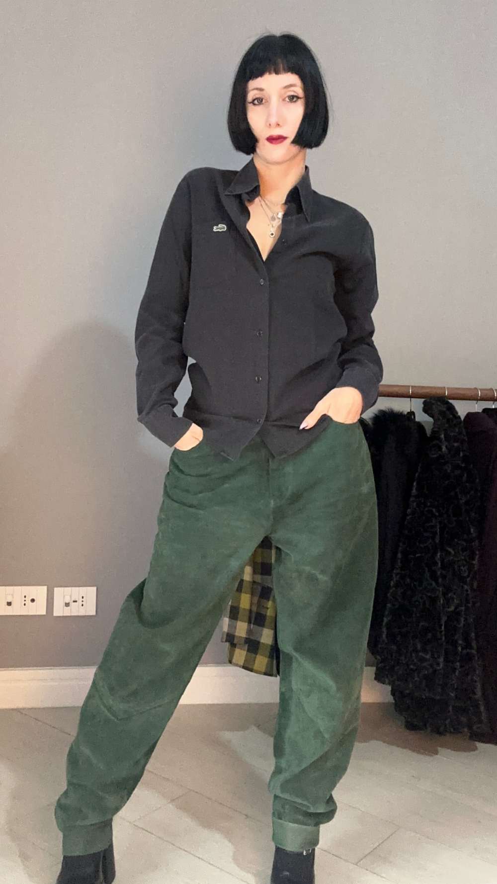 Camicia nera in cotone marca Lacoste. Tessuto morbido e confortevole, logo su taschino. In perfette condizioni vintage, non presenta imperfezioni, veste al meglio una taglia S ma fai fede alle misure.