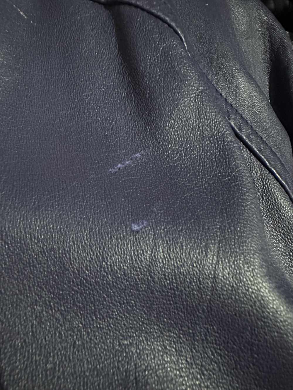 Giacca modello bomber in. vera pelle colore viola. Fascia elastica in vita, taschini con bottoni argentati, interni bellissimi. La pelle presenta qualche leggera imperfezione che va a impreziosire il capo. Segnalo un graffio sul braccio destro, si vede nell'ultima immagine.