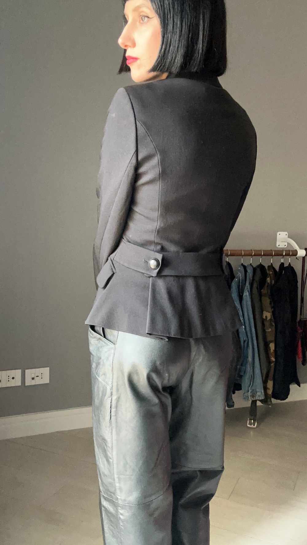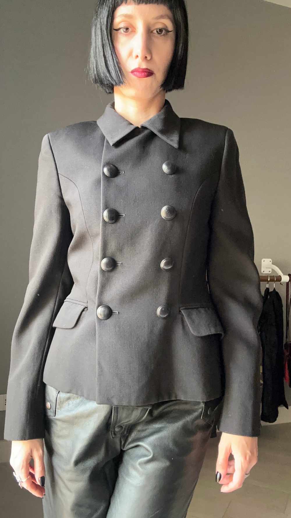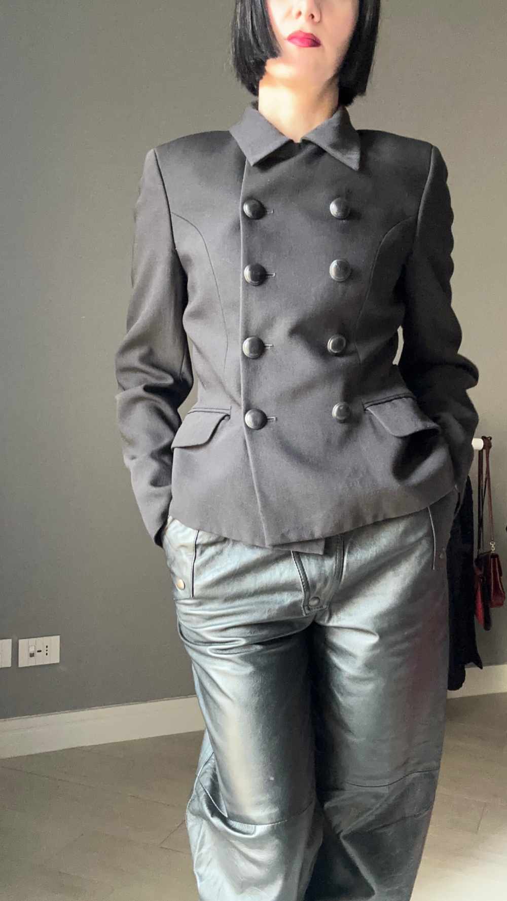 Incantevole, a metà tra un military look total black e un raffinato blazer formale, è ideale sia come capo spalle nelle giornate autunnali che come giacca sopra la quale indossare un cappotto oversize. Bellissimo con jeans stretti o larghi, con pantaloni di qualsiasi colore o con gonne, anche molto corte.