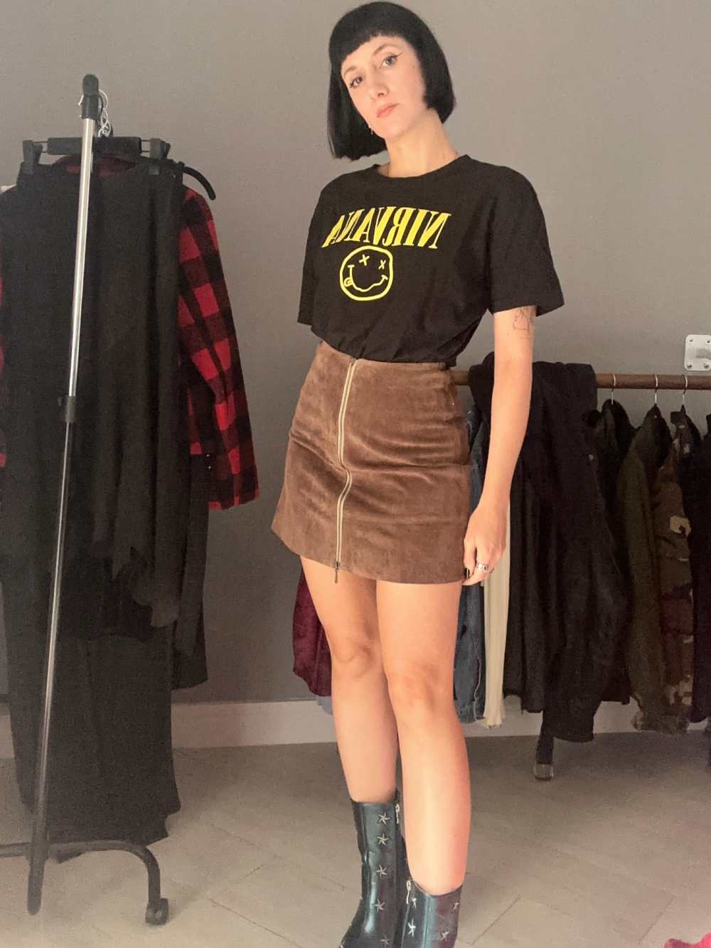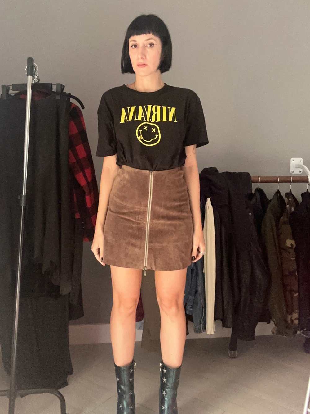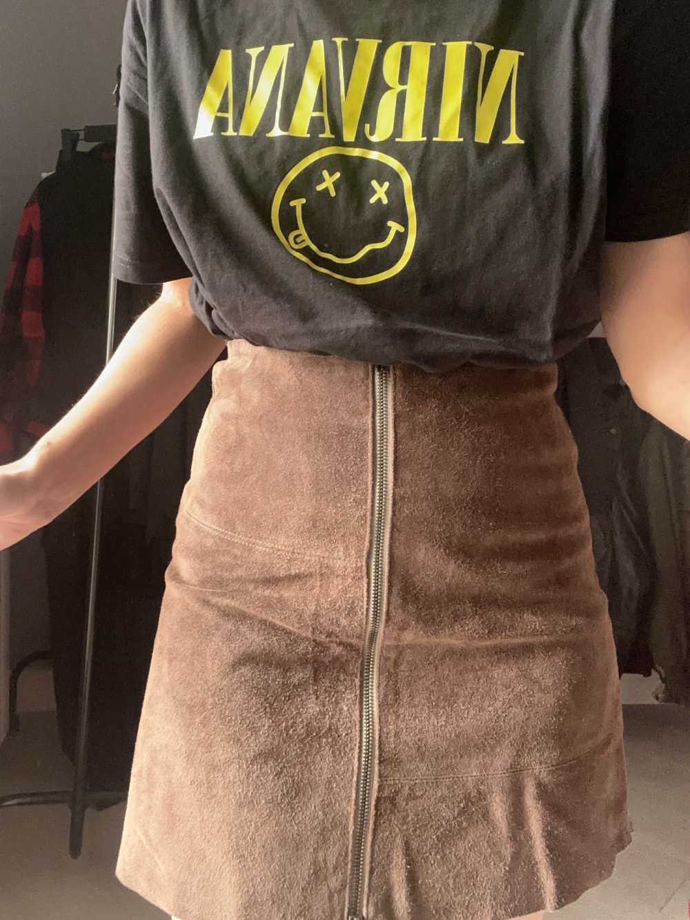 Bellissima gonna suede color cammello, marca Sisley, anni 70. Corta, con apertura con cerniera frontale. In perfette condizioni vintage, non presenta imperfezioni, veste al meglio una taglia 38-40 ma fai fede alle misure.