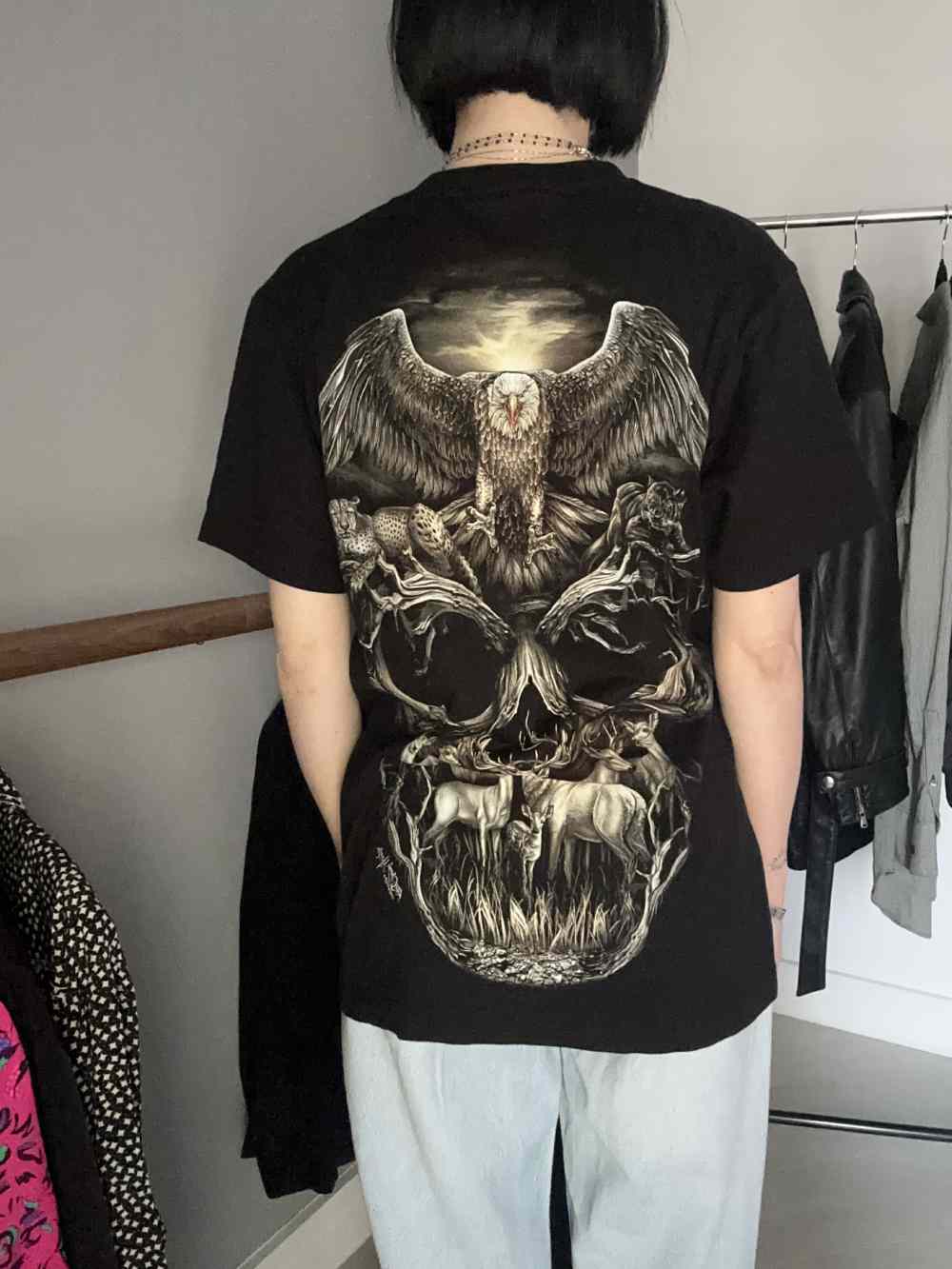 T-shirt mezza manica fondo nero con stampa davanti e dietro, unisex.